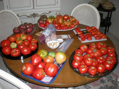 It's finally raining here in Atlanta...and it is much needed. No work outside today but there is plenty to do inside. There are enough tomatoes very ripe to make a batch of tomato puree. It is arduous but well worth it. I will preserve it in pints which is just right for the two of us and later in the cold of winner I will be able to open a jar of summer. Even though we canned tomatoes two days ago you can see that dining room table is once again ready for another batch.